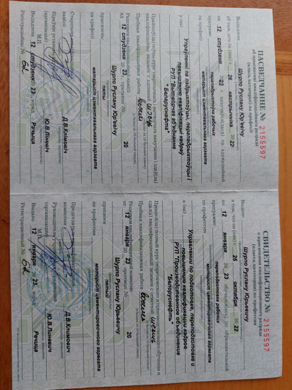 УПК Беларуснефть (Мторист ЦА 5 разряд)